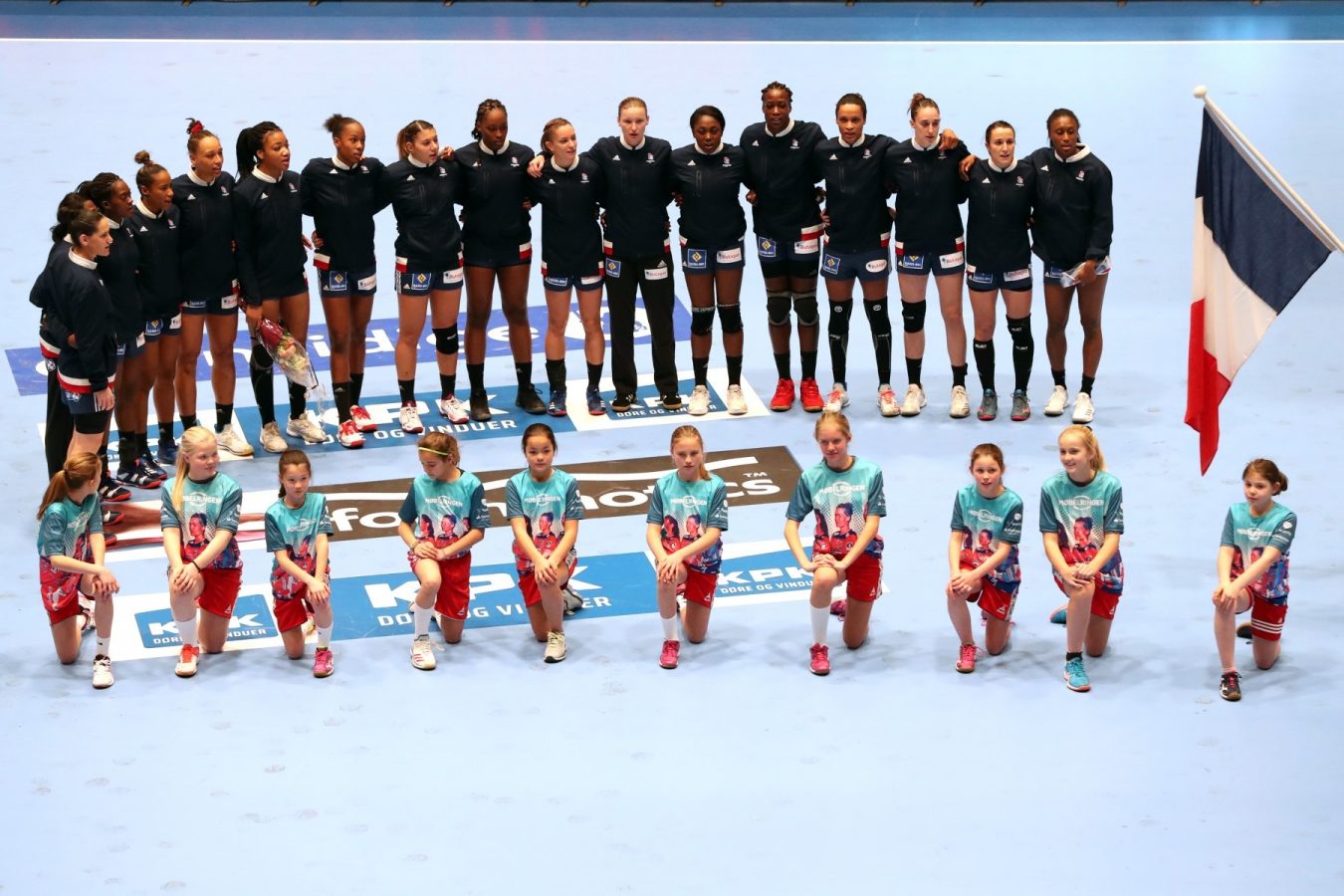 Gardiennes : Laura GLAUSER (Metz HB) - Catherine GABRIEL (Nantes Atlantique HB) - Amandine LEYNAUD (Györ, Hongrie) / Ailières gauches : Siraba DEMBÉLÉ-PAVLOVIC (Toulon Saint-Cyr Var HB) - Manon HOUETTE (Metz HB) / Arrières gauches : Orlane KANOR (Metz HB) - Kalidiatou NIAKATÉ (Nantes Atlantique HB) - Estelle NZE-MINKO (Siofok, Hongrie) / Arrière gauche / Demi-centre : Allison PINEAU (Brest Bretagne HB) / Pivots : Béatrice EDWIGE (Metz HB) - Pauletta FOPPA (Brest Bretagne HB) - Astride N’GOUAN (Metz HB) / Demi-centres : Grace ZAADI (Metz HB) / Arrières droites : Camille AYGLON-SAURINA (Nantes Atlantique HB) - Jannela BLONBOU (OGC Nice) - Alexandra LACRABÈRE (Fleury Loiret) / Ailières droites : Pauline COATANEA (Brest Bretagne HB) - Laura FLIPPES (Metz HB)